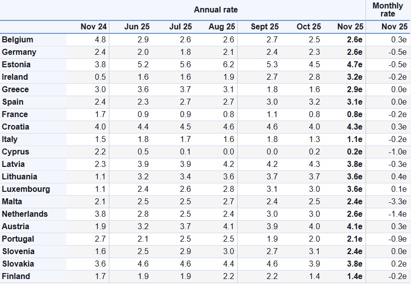 Υπενθυμίζεται ότι τον Οκτώβριο ο εναρμονισμένος δείκτης για την Ελλάδα είχε διαμορφωθεί στο 1,6%, ενώ τον Νοέμβριο του 2024 βρίσκονταν στο 3%.