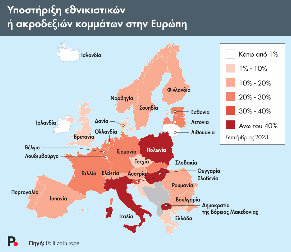 Τα κόμματα που κάποτε χαρακτηρίζονταν εξτρεμιστικά και περιθωριακά προβλέπεται να βγουν δεύτερα στη Γερμανία, στη Σουηδία, στη Λετονία, στη Βουλγαρία, στην Εσθονία και στη Φινλανδία, και τρίτο στην Πορτογαλία.