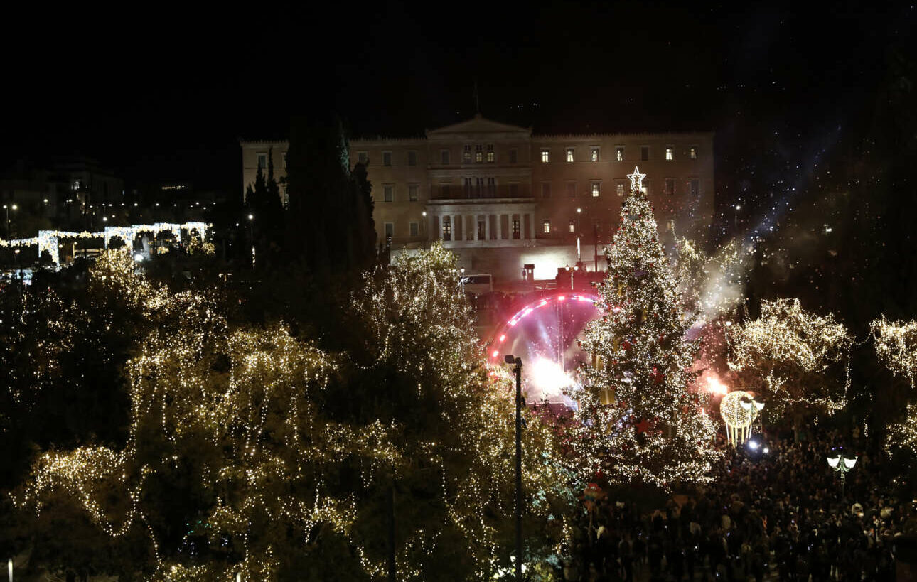 Φωταγωγήθηκε το δέντρο στην πλατεία Συντάγματος