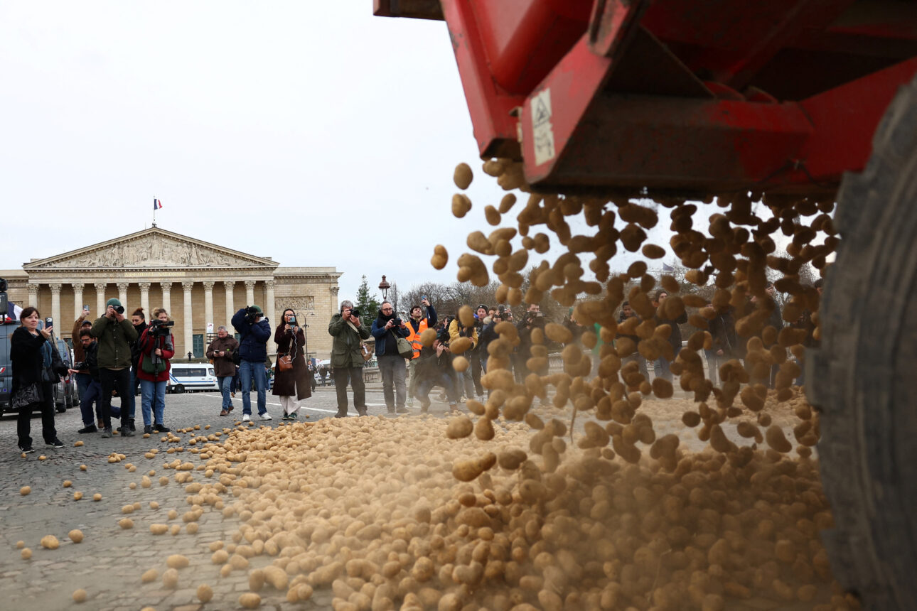 Η αστυνομία του Παρισιού εκτίμησε ότι περίπου 350 τρακτέρ συμμετείχαν στη διαδήλωση της Τρίτης. Τα τρακτέρ συγκεντρώθηκαν ξανά κοντά στην Αψίδα του Θριάμβου και κινήθηκαν προς το κτίριο της Γαλλικής Εθνοσυνέλευσης, όπου αγρότες άδειασαν αρκετούς τόνους πατάτας μπροστά από το κοινοβούλιο.