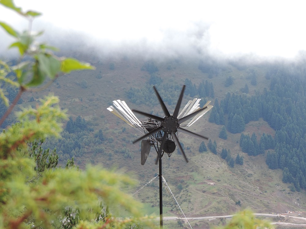 Ο φοιτητής της ΑΣΚΤ, Αντώνης Χαλυβίδης, εμπνεύστηκε από τα σύννεφα και το στοιχείο του αέρα. «Αγνάντευα τον ορίζοντα που είχε νεφώσεις και σύννεφα τα οποία ταξίδευαν έντονα»,είπε. Αργότερα θα μαθαίναμε ότι ο ίδιος είναι και πιλότος. Αρα είναι εμφανές ότι ήθελε να αφήσει ένα έργο τέχνης, «ένα πλάσμα», όπως το χαρακτήρισε, που θα ταξιδεύει μαζί με τη φαντασία των πεζοπόρων. Το κατασκεύασε στην ΑΣΚΤ, με σίδερο, αλουμίνιο και σωλήνες. «Ο έλικας κουνά τις αντένες, οι οποίες στην πραγματικότητα είναι τα εξαρτήματα μίας ομπρέλας», εξήγησε. Και οι αντένες παίρνουν ένα σχήμα που θυμίζει κουπιά καραβιού.