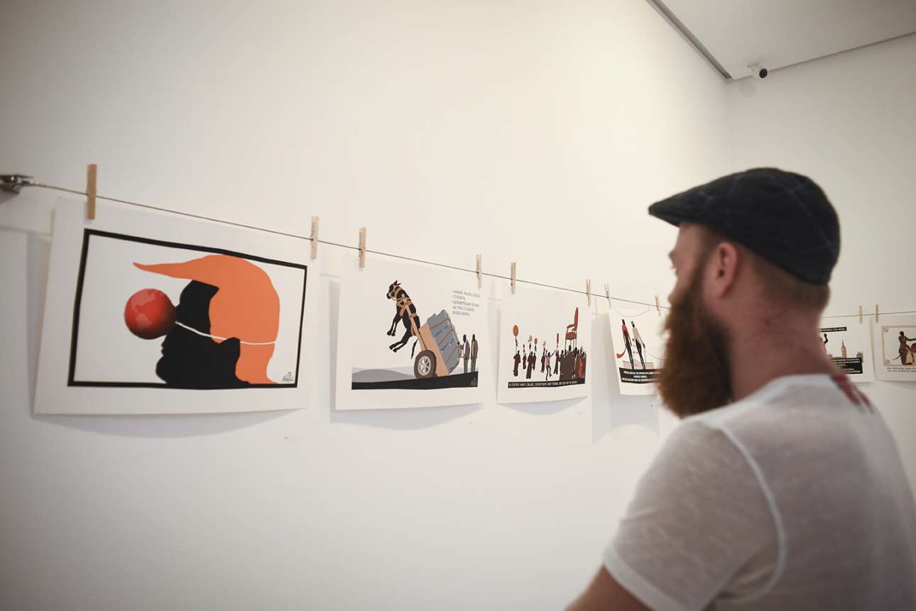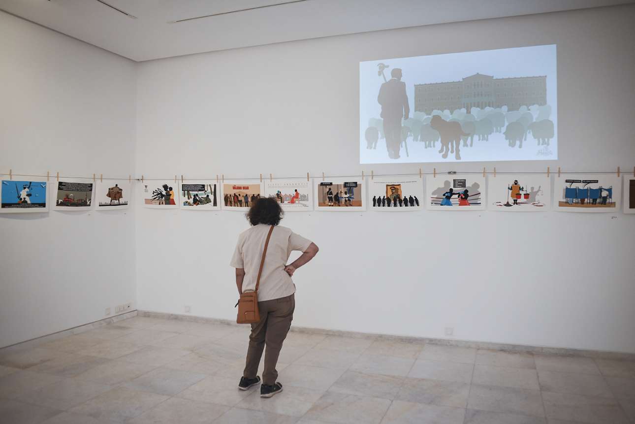 Όσο για την έκθεση; Σκίτσα καλοδιαλεγμένα, «απλωμένα» με μανταλάκια · διαθέτει φρεσκάδα. Kαι timing κομβικό – εδώ έχει βάλει το χεράκι της η πολύπειρη γκαλερίστα Πέγκυ Ζουμπουλάκη. Τώρα που η εσάνς του Τσίπρα εξανεμίζεται και το άρωμα του Μητσοτάκη αρχίζει να κεντρίζει τα ρουθούνια μας, τώρα είναι η ώρα για να δει κανείς συνολικά αυτή την εξαιρετική «μπουγάδα», δυο μήνες αργότερα μπορεί να ήταν αργά.