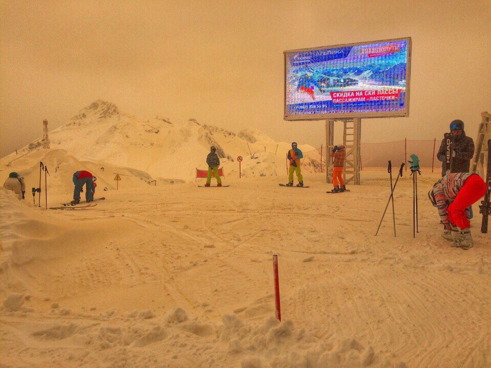 Ανάλογες εικόνες υπάρχουν και από χιονοδρομικά κέντρα στην Γεωργία και άλλες περιοχές της Ρωσίας.