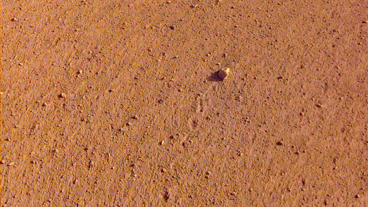 Ο λίθος, μεγέθους μπάλας του γκολφ, κέρδισε την προσοχή των επιστημόνων όταν βρέθηκε να κυλά για απόσταση ενός περίπου μέτρου κοντά στο σημείο προσγείωσης του διαστημόπλοιου InSight τον περασμένο Νοέμβριο.