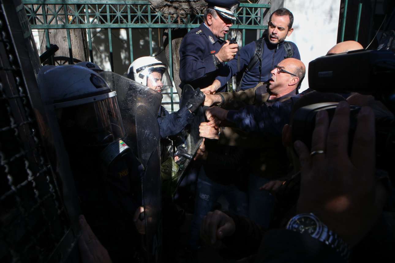 Νωρίτερα επικράτησε ένταση ανάμεσα στα μέλη της ΠΟΕΔΗΝ και τα ΜΑΤ, όταν οι πρώτοι επιχείρησαν να σπάσουν τον αστυνομικό κλοιό και να περάσουν στο Μέγαρο Μαξίμου για να συναντήσουν τον πρωθυπουργό.