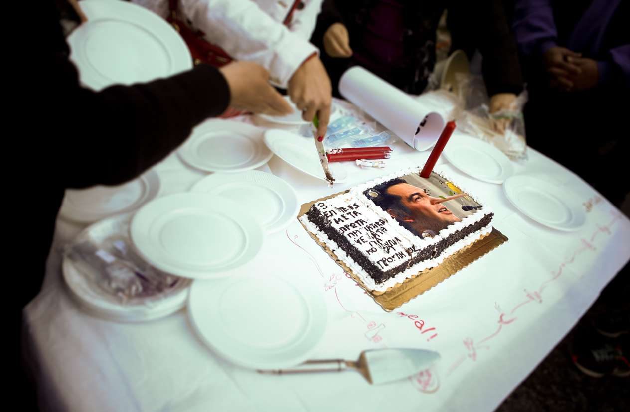 Με μία ημέρα καθυστέρηση αλλά με δυναμική παρουσία και έντονη αποφασιστικότητα, τα μέλη της ΠΟΕΔΗΝ βρέθηκε έξω από το Μέγαρο Μαξίμου για να κόψουν μία τούρτα με τρία κεράκια και το πρόσωπο του Αλέξη Τσίπρα.