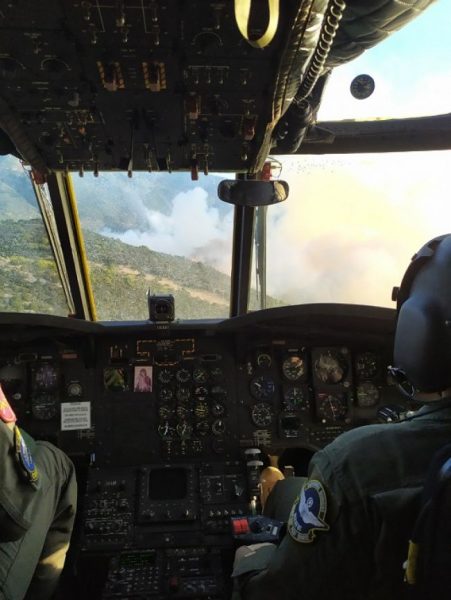 Συγκεκριμένα, δύο ελικόπτερα Σινούκ CH-47 πραγματοποίησαν δεκάδες ρίψεις νερού την Τρίτη και την Τετάρτη με τις φωτογραφίες που ελήφθησαν από τα μέλη των πληρωμάτων να δείχνουν το μέγεθος και την ένταση της φωτιάς που έκανε στάχτη 25.000 στρέμματα δάσους Natura.