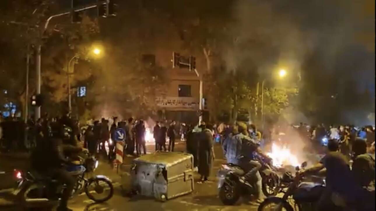 Εκατοντάδες άνθρωποι συγκεντρώθηκαν και έξω από το Πανεπιστήμιο της Τεχεράνης φωνάζοντας αδιάκοπα «Γυναίκα, Ζωή, Ελευθερία».