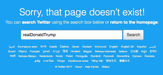 Για 11 λεπτά ο λογαριασμός του Τραμπ (@realdonaldtrump) έβγαζε το μήνυμα ότι δεν είναι υπαρκτός.