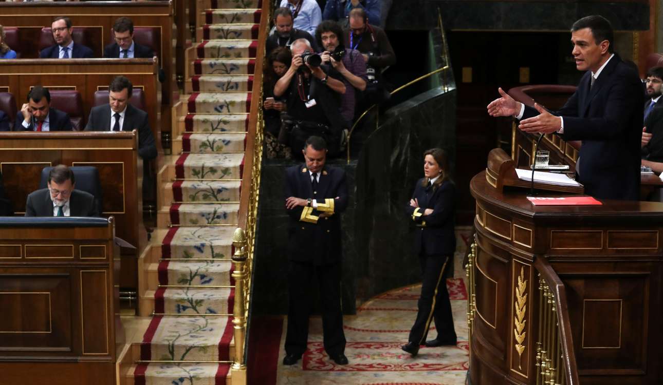 Από την πλευρά του, ο ηγέτης του PSOE Πέδρο Σάντσεθ, προτού καν εξασφαλίσει τη στήριξη του Βασκικού Εθνικιστικού Κόμματος (PNV), πρότεινε στον Ραχόι να αποχωρήσει. Του είπε ότι έχει ακόμη τον χρόνο να φύγει από μόνος του και να αποφύγει τον «εξευτελισμό», να γίνει δηλαδή ο πρώτος ισπανός πρωθυπουργός που θα ηττηθεί σε πρόταση μομφής. «Είστε έτοιμος να παραιτηθείτε; Παραιτηθείτε σήμερα και φύγετε με τη θέλησή σας. Είστε παρελθόν, ένα κεφάλαιο της χώρας κλείνει», είπε στην ομιλία του ο Σάντσεθ.