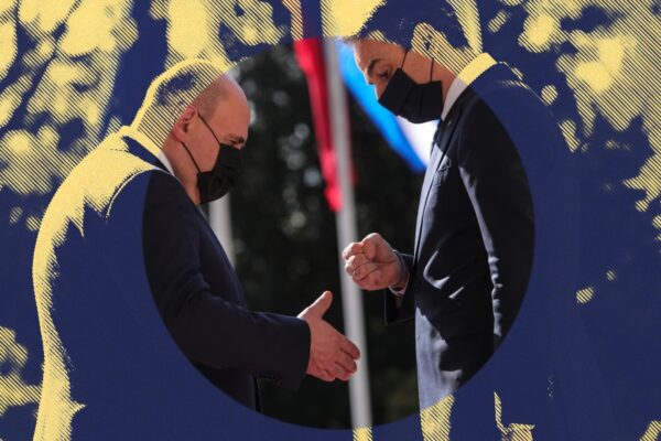 Και εκεί ο φακός του SOOC και του Γιώργου Βιτσάρα τον συνέλαβε να ξεχνά τα πρωτόκολλα της Covid-19: ο ρώσος πρωθυπουργός πήγε να δώσει το χέρι του στον έλληνα ομόλογό του, ο οποίος βέβαια, προσεκτικός πάντα, είχε ήδη σχηματίσει μια γροθιά.