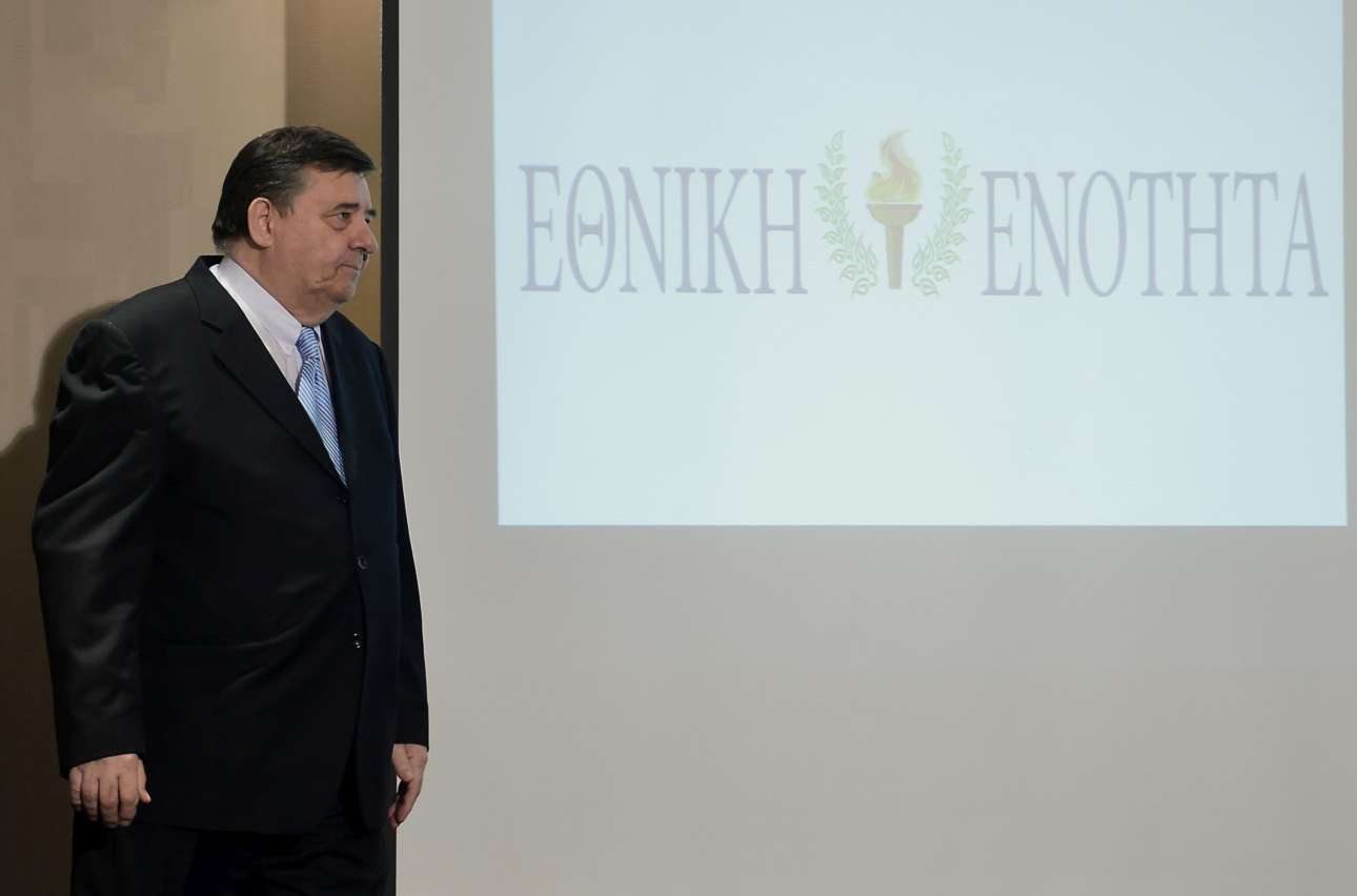 Ο Γιώργος Καρατζαφέρης ποζάρει δίπλα στο λογότυπο της Εθνικής Ενότητας, του νέου κόμματος που φιλοδοξεί να αποτελέσει τη dream team της «αδέσποτης» δεξιάς, κοινώς εκείνων που βρίσκουν τη ΝΔ αρκετά αριστερή και τη Χρυσή Αυγή επίφοβη. Ηγέτης του κόμματος είναι, ασφαλώς, ο πρόεδρος Γιώργος, ενώ κομβικό ρόλο επιτελεί ο Τάκης Μπαλτάκος, γνωστός και ως «ο playmaker» -ο αείμνηστος Ευάγγελος Αβέρωφ θα τον χαρακτήριζε απλώς «τσομπάνη» καθώς προσπαθεί να συγκεντρώσει πρόβατα σε ένα μαντρί. Τέλος πάντων θα δούμε πόσοι θα μαζευτούν και πόση επιτυχία θα έχουν. Προς το παρόν αξίζει να απολαύσουμε το λογότυπο της «Ενότητας», εστιάζοντας στη σημειολογία του.Παρακαλώ την προσοχή σας.