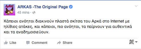 Και από την επίσημη σελίδα του Αρκά βγήκε ανακοίνωση για την πλαστογραφία. -