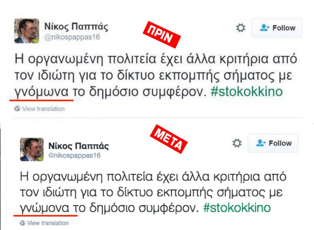 Ο Νίκος Παππάς πρόδωσε τις επαναστατικές αρχές της ανορθογραφίας!