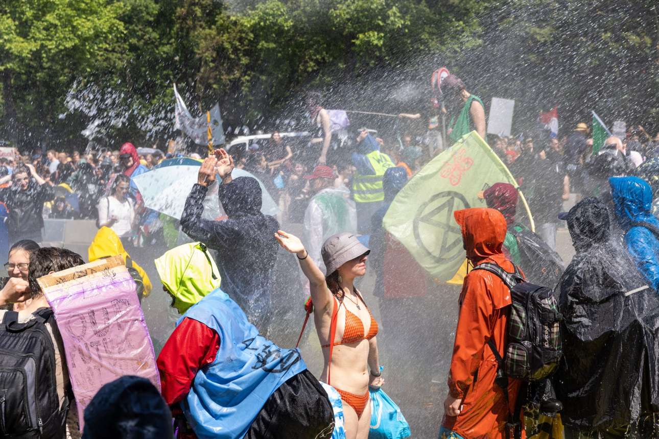 Κάποιοι ακτιβιστές φορούσαν μαγιό έχοντας προβλέψει την χρήση αντλιών νερού από την αστυνομία.