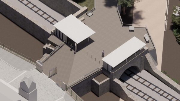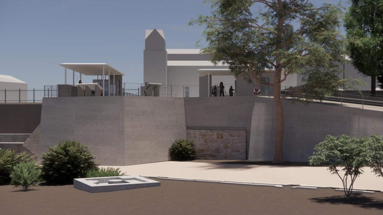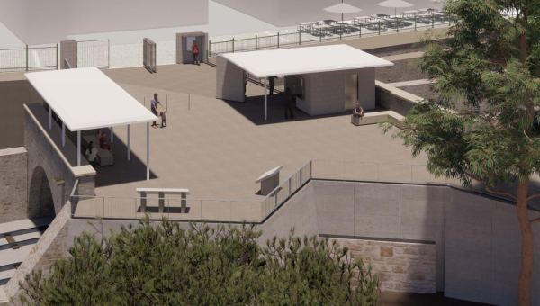 Στην είσοδο επί της οδού Αποστόλου Παύλου αναβαθμίζεται το υφιστάμενο εκδοτήριο και κατασκευάζεται στέγαστρο για τη σκίαση των επισκεπτών, κατά τη διαδικασία έκδοσης εισιτηρίων, του αυτόματου πωλητή νερού και του εκδοτηρίου e-ticket. Για τους χώρους υγιεινής προτείνεται ολική ανακαίνιση των υφιστάμενων εγκαταστάσεων, με προσθήκη νέων, με προδιαγραφές και για ΑμεΑ, αλλά και η αντικατάσταση των παλαιών δικτύων ύδρευσης και αποχέτευσης. Οσον αφορά στον εξοπλισμό, προτείνονται νέοι στύλοι περισχοίνισης, νέες πληροφοριακές πινακίδες, νέα καθιστικά και νέα κιγκλιδώματα.