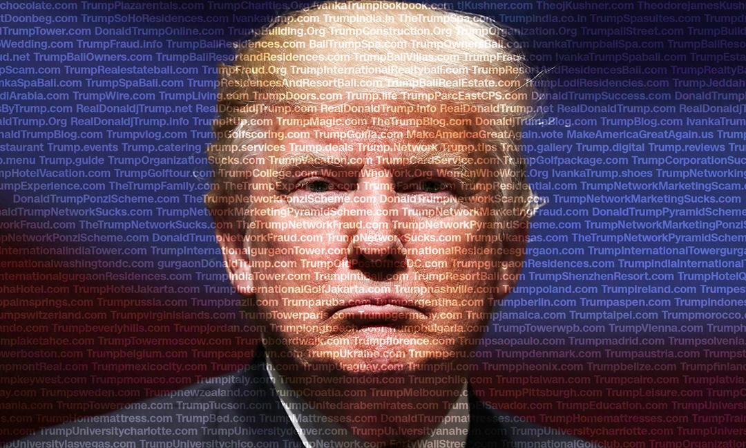 Κάποια είναι κοινότοπα, αλλά ασύλληπτα. Υπάρχουν αυτά που αναφέρονται στις πολιτικές του κινήσεις και εκείνα που ασχολούνται με τις οικονομικές του επιχειρήσεις. Μερικά τον υμνολογούν, αλλά δεν λείπουν και εκείνα που τον επικρίνουν. Oλα τους, πάντως, ανήκουν στον ίδιο ιδιοκτήτη, ο οποίος φαίνεται ότι προσπαθεί να αποκτήσει τον έλεγχο οποιουδήποτε σάιτ στη διεύθυνση του οποίου εμφανίζονται οι λέξεις «Ντόναλντ» ή «Τραμπ».