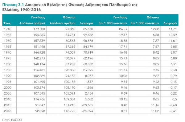 Το 2016 ο δείκτης γονιμότητας στη χώρα μας ήταν 1,38, ένας από τους χαμηλότερους στον κόσμο. Πλέον στην Ελλάδα γεννιούνται λιγότερα από 100.000 παιδιά τον χρόνο.