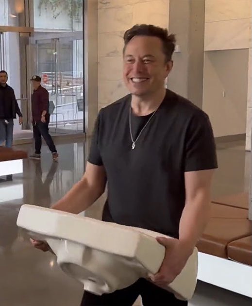 Πριν κλείσει τη συμφωνία, ο εκκεντρικός ιδρυτής της SpaceX μπήκε στις κεντρικές εγκαταστάσεις του Twitter την Τετάρτη με ένα πλατύ χαμόγελο κουβαλώντας έναν πορσελάνινο νεροχύτη, γράφοντας στη συνέχεια στο Twitter «αφήστε το να εμπεδωθεί».