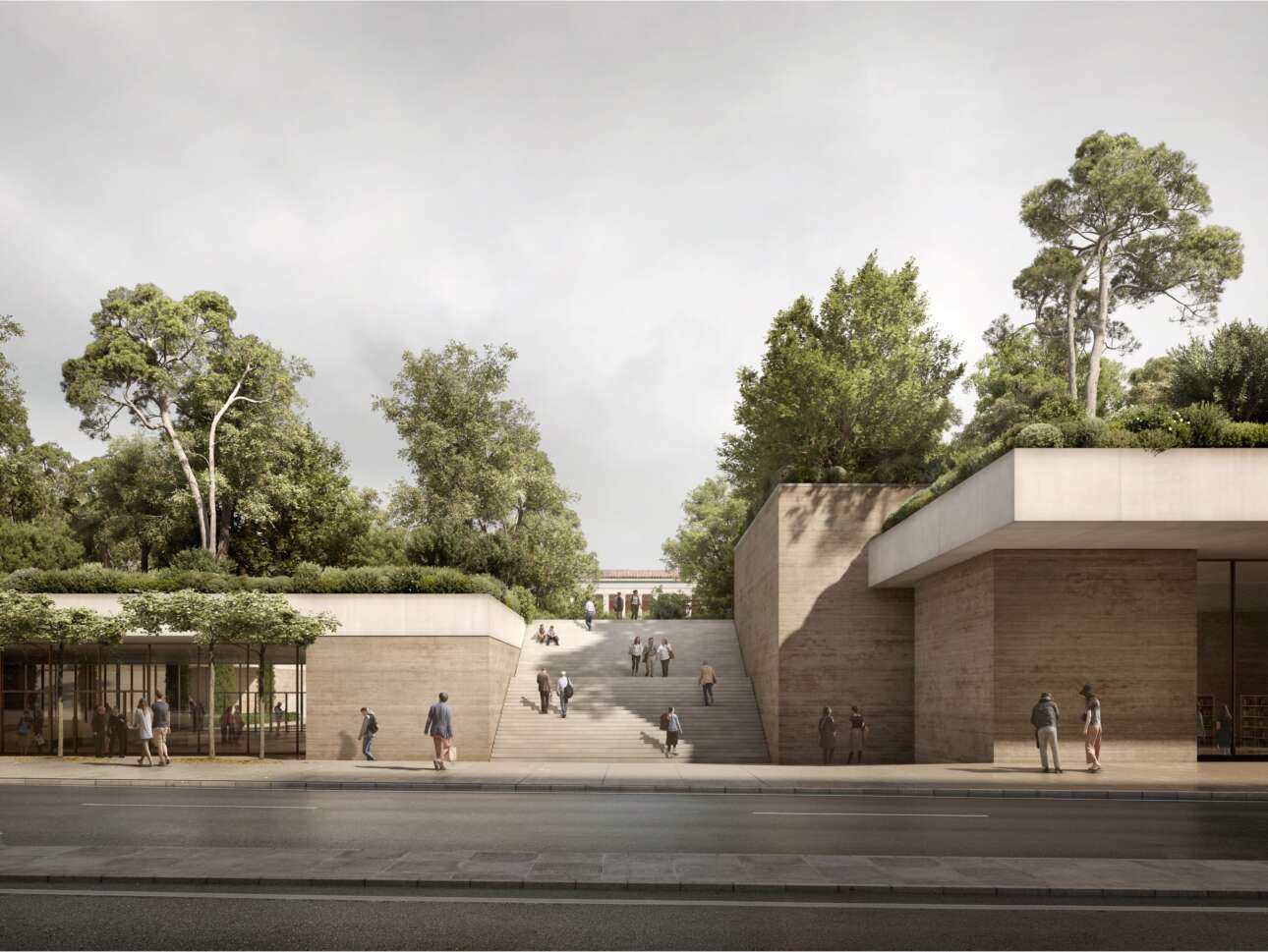 Στην επέκταση του Εθνικού Αρχαιολογικού Μουσείου, θεωρείται ενδιαφέρουσα -με αρχιτεκτονικούς όρους- η αντιθετική συνύπαρξη της «συμμετρίας» του νεοκλασικού κτιρίου, με την «οργανική ρευστότητα» ενός ρομαντικού τοπίου. Αξίζει να σημειωθεί ότι καμπυλόγραμμες διαδρομές και ράμπες θα συνδέουν τους ανοιχτούς χώρους σε διαφορετικά επίπεδα, αποκαλύπτοντας προοπτικές και διαγώνιες συνδέσεις. Το πάρκο θα είναι δε προσβάσιμο από όλες τις κατευθύνσεις, ενώ μια εσωτερική, υποβαθμισμένη, αυλή στην καρδιά του συγκροτήματος θα προσφέρει «ανάσα», ενοποιώντας το παλαιό και το νέο.