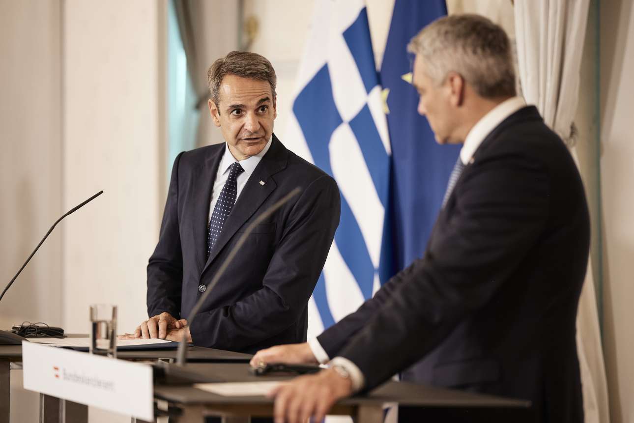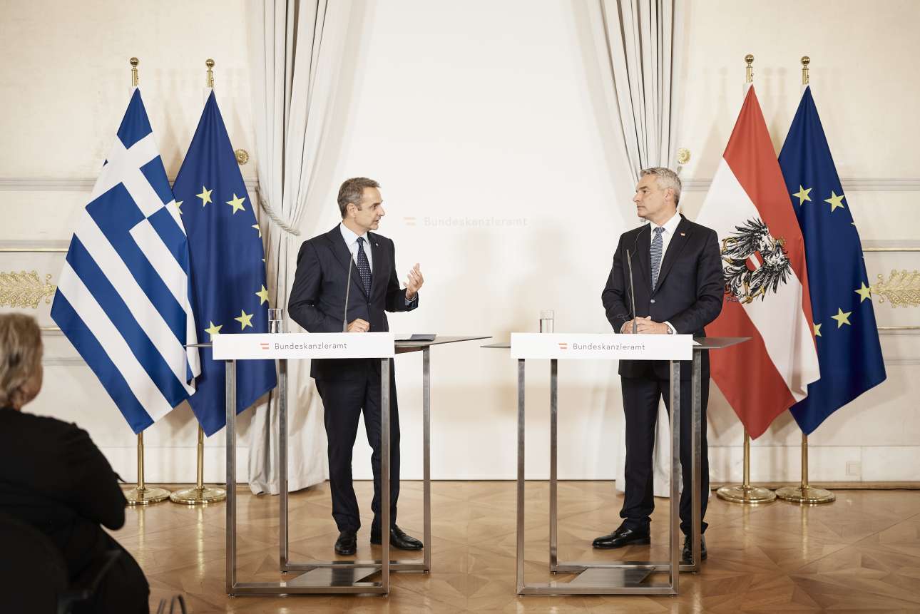 Ο Πρωθυπουργός δήλωσε ευγνώμων για τη βοήθεια της Αυστρίας το Μάρτιο του 2020 «όταν αντιμετωπίσαμε μια οργανωμένη απόπειρα παραβίασης των ελληνικών συνόρων, την οποία ευτυχώς, για το καλό της Ελλάδας και της Ευρώπης, την αποκρούσαμε αποτελεσματικά». «Ήταν, ανέφερε, ένα πρώτο μήνυμα και προάγγελος της αλλαγής της ευρωπαϊκής στάσης η οποία έθεσε σε προτεραιότητα την εξωτερική φύλαξη των συνόρων, κάτι που συμπεριλαμβάνεται στα συμπεράσματα του Ευρωπαϊκού Συμβουλίου και ενσωματώνεται στο Σύμφωνο μετανάστευσης και ασύλου».