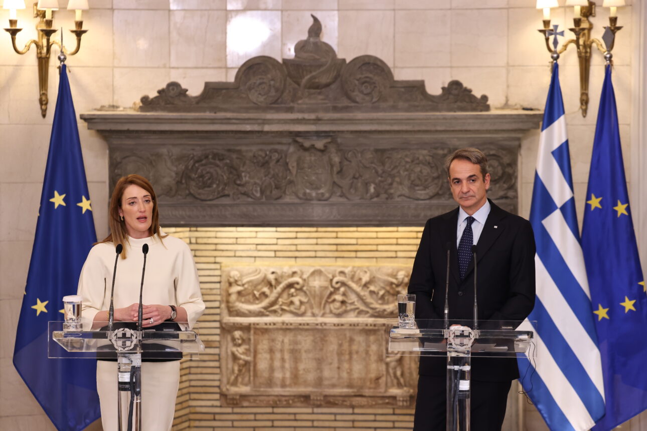 Οι σύγχρονες προκλήσεις απαιτούν άμεσες και δυναμικές απαντήσεις. Η σημερινή ρευστή κατάσταση απαιτεί από την Ευρώπη να ενηλικιωθεί, να προχωρήσει σε κρίσιμες επιλογές για την ευημερία και την ασφάλεια των πολιτών της, ήταν το μήνυμα που θέλησε να εκπέμψει ο Πρωθυπουργός, Κυριάκος Μητσοτάης, στις κοινές του δηλώσεις με την πρόεδρο του Ευρωπαϊκού Κοινοβουλίου, Ρομπέρτα Μέτσολα, μετά το πέρας της συνάντησής τους στο Μέγαρο Μαξίμου.
