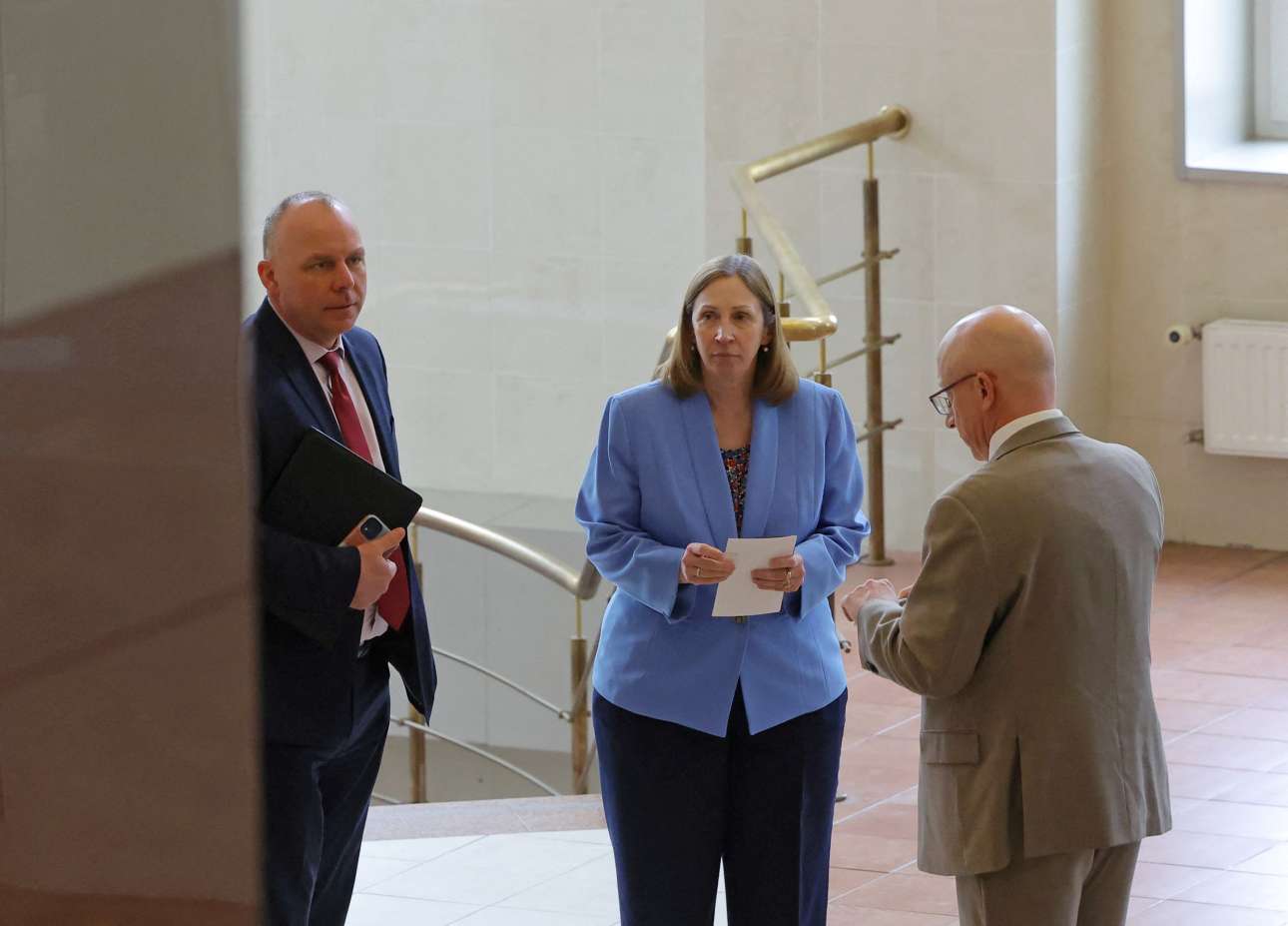 Η πρεσβευτής των ΗΠΑ στη Ρωσία, Λιν Τρέισι, επισκέφθηκε για πρώτη φορά στη φυλακή τον Eβαν Γκέρσκοβιτς, δημοσιογράφο της Wall Street Journal που κατηγορείται από τη Μόσχα για κατασκοπεία.