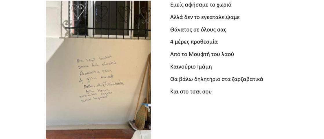 «Χθες Παρασκευή 29 Σεπτεμβρίου 2023, με θλίψη ενημερωθήκαμε ότι στο Ιερό Τέμενος του χωριού Πίλημα-Ξάνθης, άγνωστοι έγραψαν στην τουρκική γλώσσα απειλητικά μηνύματα κατά της ζωής του Ιμάμη, του Μουεζίνη και της Βακουφικής Επιτροπής στους εξωτερικούς τοίχους του Τεμένους καθώς και στους τσιμεντένιους στύλους της αυλόπορτας. Επίσης, τοποθέτησαν τέσσερα φυσίγγια τυλιγμένα και στερεωμένα με μονωτική ταινία πάνω στην πόρτα της αυλής ως ένα σαφέστατο μήνυμα κατά της ζωής τους που παραπέμπει σε ξένους παρακρατικούς μηχανισμούς.