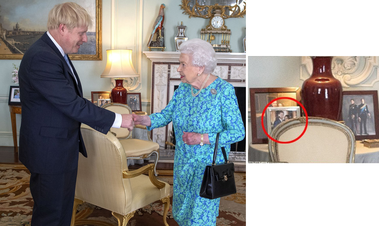 Μετά τη μυθική υπόκλιση του Μπόρις, οι δυο τους φωτογραφήθηκαν στο σαλόνι υποδοχής του Παλατιού. Σε δεύτερο πλάνο, πάνω σε ένα έπιπλο, διακρινόταν η κορνίζα της Μέγκαν και του Χάρι, τοποθετημένη μπροστά από εκείνη της Κέιτ και του Ουίλιαμ, του μεγάλου αδελφού του Χάρι, και δεύτερου στη σειρά διαδοχής του θρόνου της Αγγλίας.