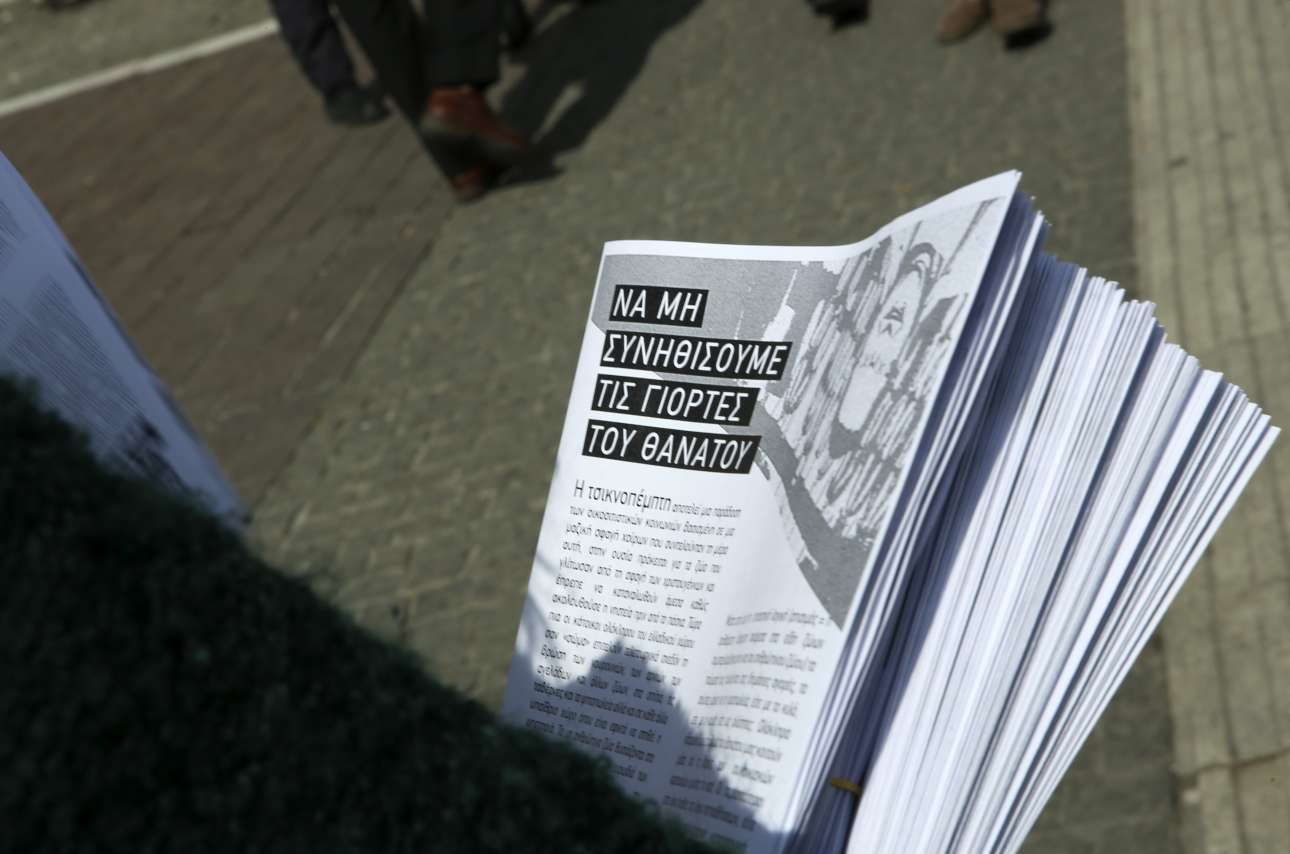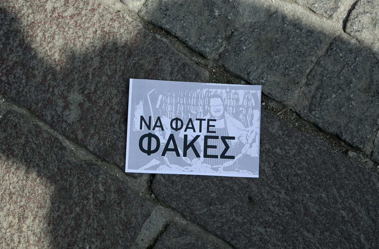 Αυτό ήταν και το κεντρικό σύνθημα της διαμαρτυρίας με τους οργανωμένους να πετούν τρικάκια στα οποία, μεταξύ άλλων, καλούσαν τους πολίτες «να φάτε φακές».