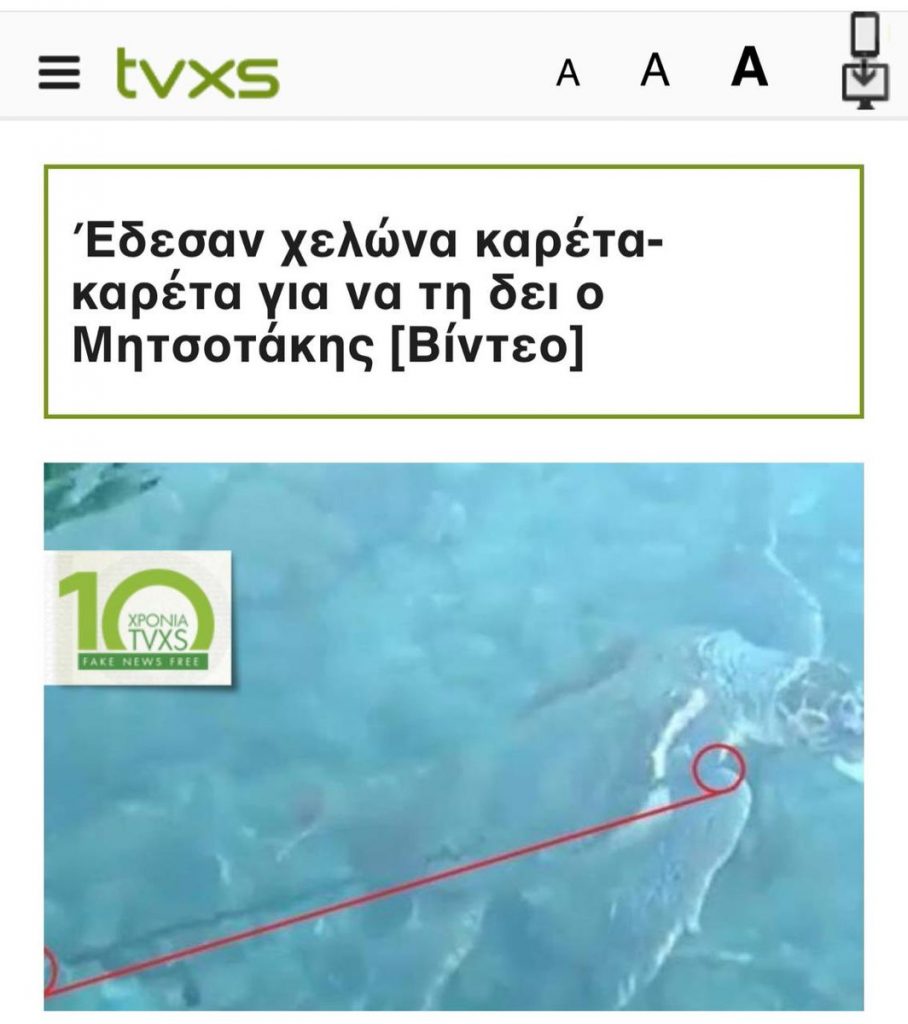 Το σενάριο της ψευδούς είδησης ήθελε κατοίκους του Καστελόριζου να έχουν δέσει με σχοινί χελώνα καρέτα καρέτα, προκειμένου να τη δει από κοντά ο κ. Μητσοτάκης και η σύζυγός του κατά την πρόσφατη επίσκεψή τους στο ακριτικό νησί.