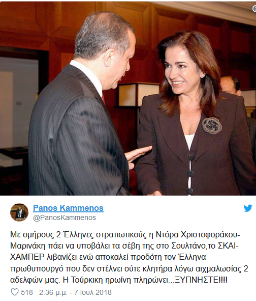 Θυμίζουμε πως ο υπουργός Αμυνας, Πάνος Καμμένος, για δεύτερη φορά μέσα σε λίγες ημέρες, επέλεξε να «κρυφτεί» πίσω από τον νόμο περί ευθύνης Υπουργών, αυτήν την φορά για την υπόθεση του tweet που είχε κάνει στις 7 Ιουλίου και στο οποίο αναφερόταν στο πρόσωπό της Ντόρας Μπακογιάννη με σκαιούς χαρακτηρισμούς.