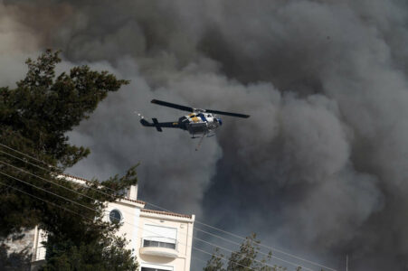 #Πυρκαγιά σε χορτολιβαδική έκταση επί της οδού Ομήρου στον Κουβαρά Αττικής. Κινητοποιήθηκαν επίγειες και εναέριες δυνάμεις.