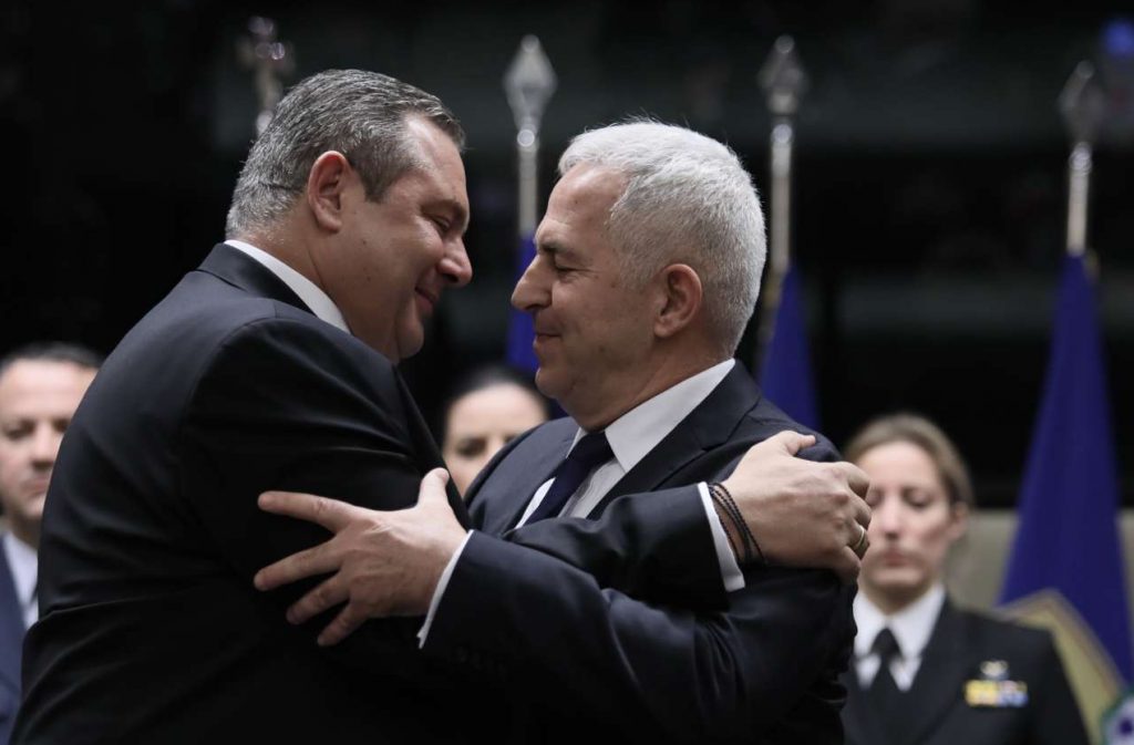 Το όλο σκηνικό συμπληρώθηκε με τις υπερπτήσεις των μαχητικών της Πολεμικής Αεροπορίας πάνω από το Λεκανοπέδιο προς τιμήν του απερχόμενου και του νέου υπουργού Αμυνας. Ετσι για να χαλυβδωθεί και το πατριωτικό αίσθημα!