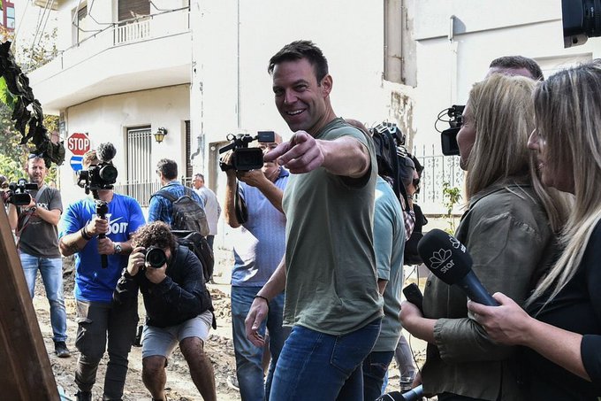 To σόου Κασσελάκη συνεχίστηκε με βίντεο στοργικής αγκαλιάς σε πλημμυροπαθή ηλικιωμένη που συνοδευόταν από διαβεβαιώσεις τύπου «δεν είσαι μόνη σου» – βίντεο το οποίο βεβαίως και «ανέβηκε» αμέσως στα social media του αρχηγού του ΣΥΡΙΖΑ.