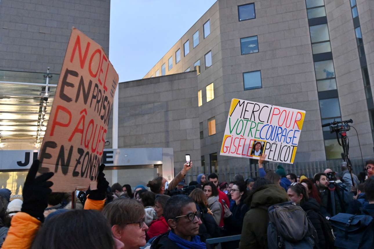 Εξω από το κτίριο, είχαν συγκεντρωθεί εκατοντάδες άτομα διαμαρτυρόμενα για τη βία κατά των γυναικών και φωνάζοντας συνθήματα υπέρ της Ζιζέλ Πελικό.