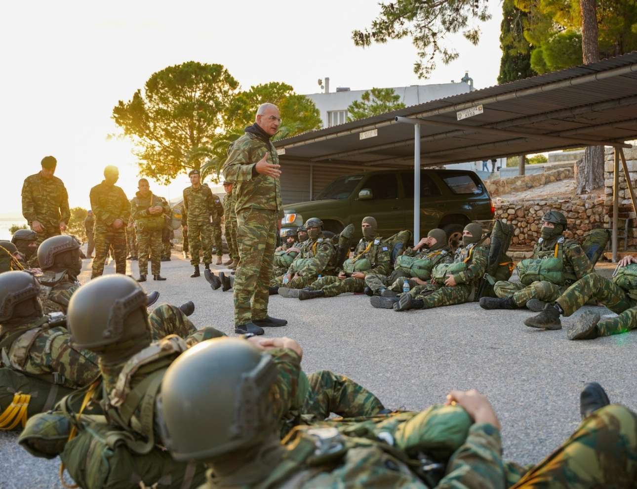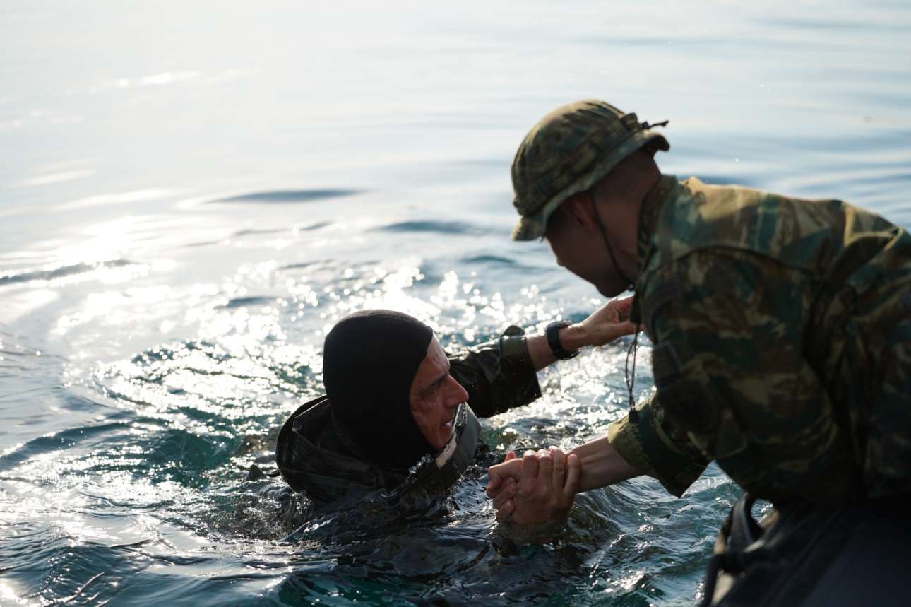 Μαζί του στην άσκηση που έγινε στη θαλάσσια περιοχή της Νέας Περάμου και στη Ζώνη Ρίψεως Μεγάρων και εντάσσεται στον σχεδιασμό της επιχειρησιακής αναβάθμισης των εφέδρων των Ενόπλων Δυνάμεων, οι επιχειρησιακοί διοικητές των Ειδικών Δυνάμεων – Δυνάμεων Ειδικών Επιχειρήσεων, καθώς και έφεδροι αξιωματικοί και καταδρομείς – αλεξιπτωτιστές.