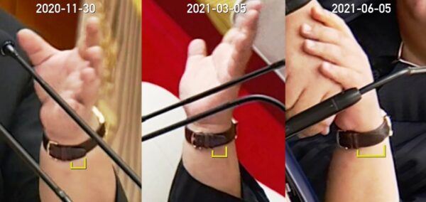 Αποδεικτικό στοιχείο είναι το μεγαλύτερο σφίξιμο του λουριού όχι στον λαιμό του λαού, αλλά στον καρπό του Κιμ. Το λουρί, αν και πιο σφιγμένο πάνω στο λίπος του απογόνου του επαναστατικού Οίκου των Κιμ, είναι γερό και εξακολουθεί να συγκρατεί με αυταπάρνηση ένα ρολογάκι αξίας 12.000 δολαρίων.