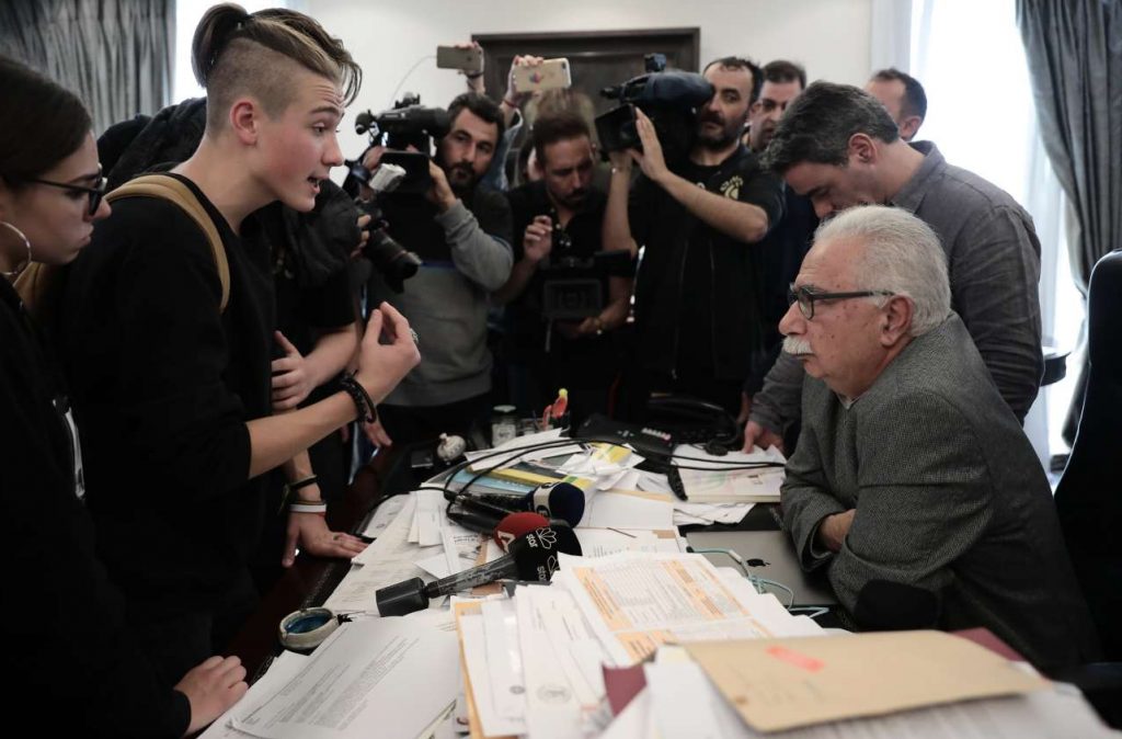 Η εικόνα του γραφείου, φορτωμένου με στοίβες εγγράφων σε κάθε γωνιά του, όπως ήρθε στο φως της δημοσιότητας από τις φωτογραφίες της επεισοδιακής διαμαρτυρίας των μαθητών στο υπουργείο Παιδείας (δείτε δύο αντιπροσωπευτικές κάτω), προκάλεσε θυμηδία και καυστικά σχόλια στα social media.