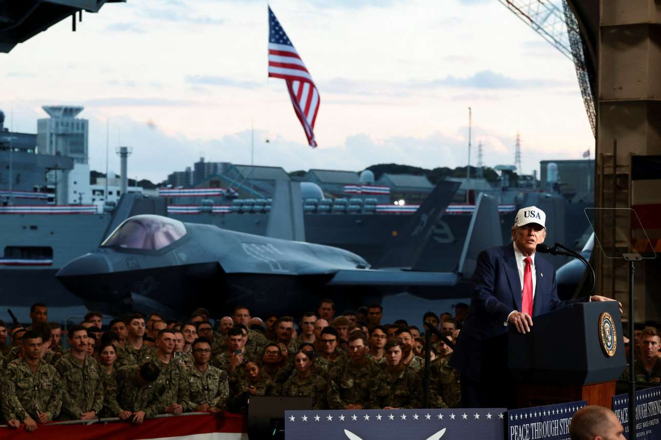 Στη συνέχεια ανακοίνωσε ότι ενέκρινε την πρώτη παρτίδα πυραύλων που θα παραδοθούν στις Ιαπωνικές Δυνάμεις Αυτοάμυνας, νωρίτερα από το αρχικό χρονοδιάγραμμα. Φυσικά, εξήρε τη στρατιωτική ισχύ των ΗΠΑ, λέγοντας: