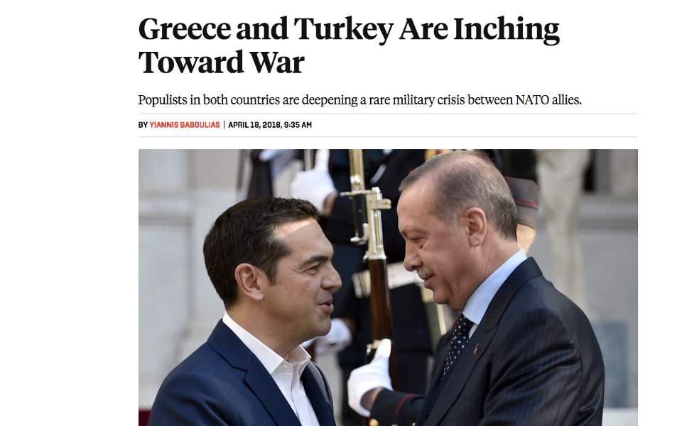 «Οι σχέσεις μεταξύ Ελλάδας και Τουρκίας δεν ήταν ποτέ εύκολες» παρατηρεί το αμερικανικό περιοδικό σε άρθρο του έλληνα δημοσιογράφου Γιάννη Μπαμπούλια (συνεργάτη των Al Jazeera, Guardian, Vice, Channel 4 News κ.ά), με τον χαρακτηριστικό τίτλο: «Ελλάδα και Τουρκία κινούνται αργά προς τον πόλεμο».
