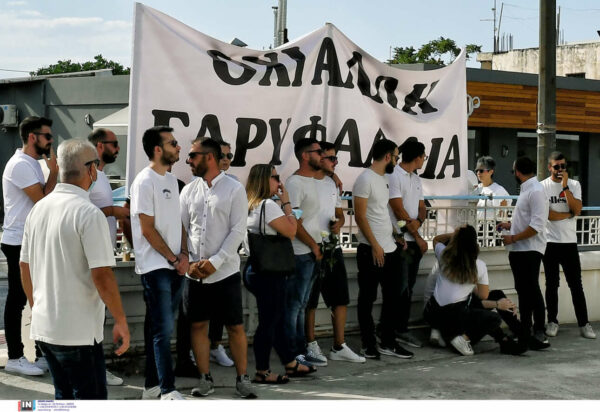 Δίπλα στο λευκό φέρετρο της 26χρονης, ένα πανό που έγραφε «Όχι άλλη Γαρυφαλλιά », σε ένα μήνυμα για τις επαναλαμβανόμενες υποθέσεις γυναικοκτονιών τον τελευταίο καιρό στη χώρα μας.