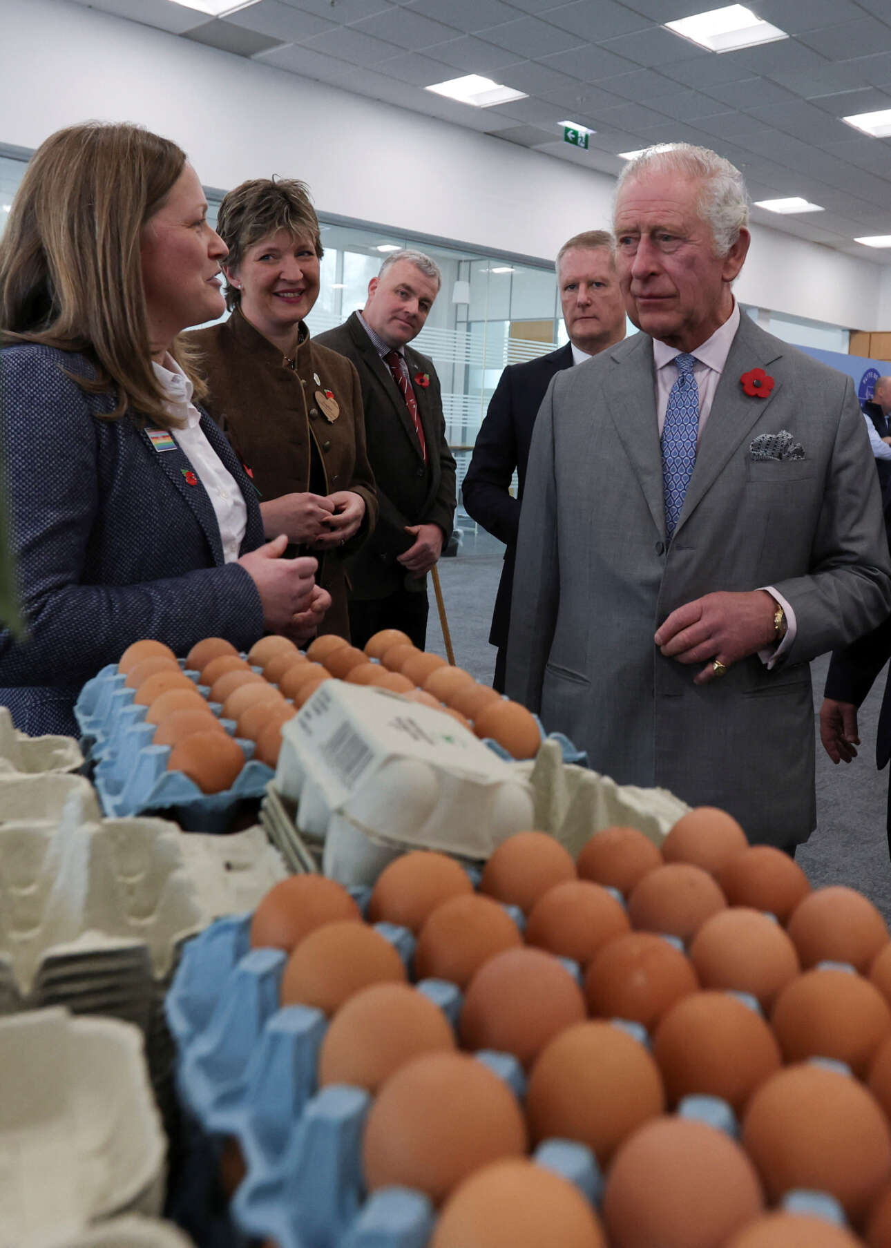 Ο βασιλιάς Κάρολος έδειξε ενδιαφέρον και για τα αυγά με ουδέτερο ισοζύγιο άνθρακα. Ρώτησε αν τα χρεώνουν περισσότερο από τα άλλα, με τους ανθρώπους του σουπερμάρκετ να του απαντούν ότι «πληρώνουμε περισσότερα τους παραγωγούς για να τα έχουμε και χρεώνουμε τους πελάτες λίγο περισσότερο, αλλά όχι πάρα πολύ, γιατί θέλουμε να τους φέρουμε στη φιλοσοφία του καθαρού μηδέν (άνθρακα)». (Τα αυγά αυτά γεννιούνται από λευκές κότες που βοσκούν ελεύθερες σε ανοιχτά βοσκοτόπια και τρέφονται με καλλιέργειες απαλλαγμένες από γενετικώς τροποποιημένους οργανισμούς).