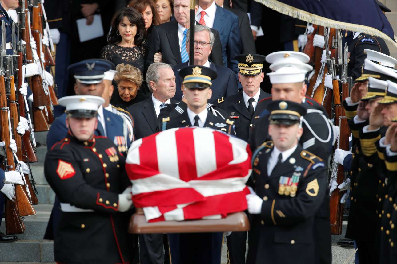 Το φέρετρο του πρώην προέδρου, που απεβίωσε σε ηλικία 94 ετών, έφθασε στον καθεδρικό ναό της Ουάσιγκτον λίγο μετά τις 18.00 ώρα Ελλάδας με σύσσωμη την οικογένεια Μπους να συνοδεύει τη σορό.