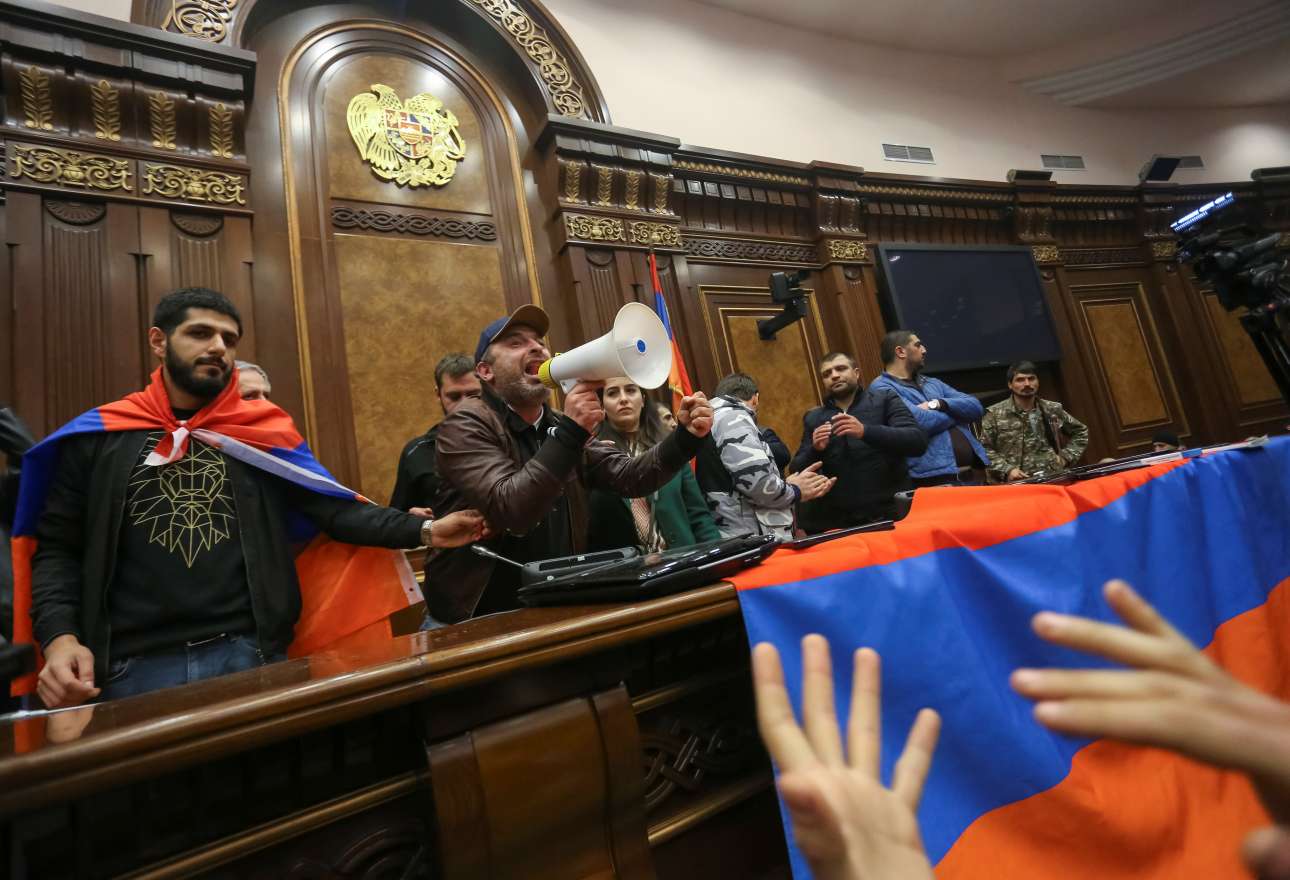 Σε αυτόν τον επώδυνο συμβιβασμό, που ήλθε έπειτα από βαριές απώλειες σε έμψυχο και πολεμικό υλικό, οι Αρμένοι απάντησαν με οργή, εισβάλλοντας στο Κοινοβούλιο της χώρας τους.