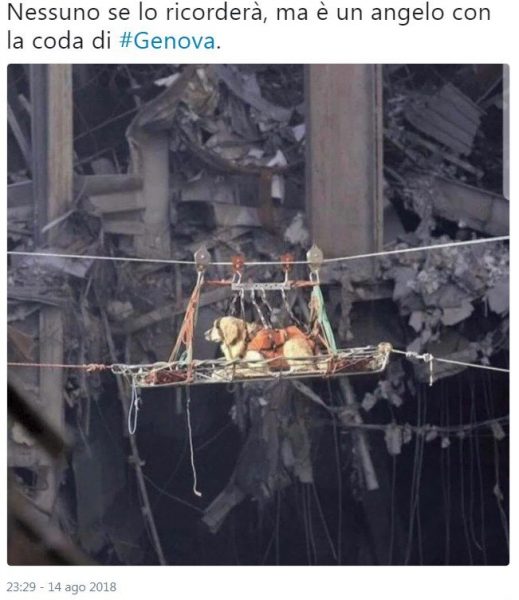 Ακόμη και σκυλιά που έλαβαν μέρος στις επιχειρήσεις διάσωσης στους Διδύμους Πύργους της Νέας Υόρκης, το 2001, παρουσιάζονται σχετιζόμενα με τις προσπάθειες διάσωσης Γενοβέζων εγκλωβισμένων στα μπάζα!