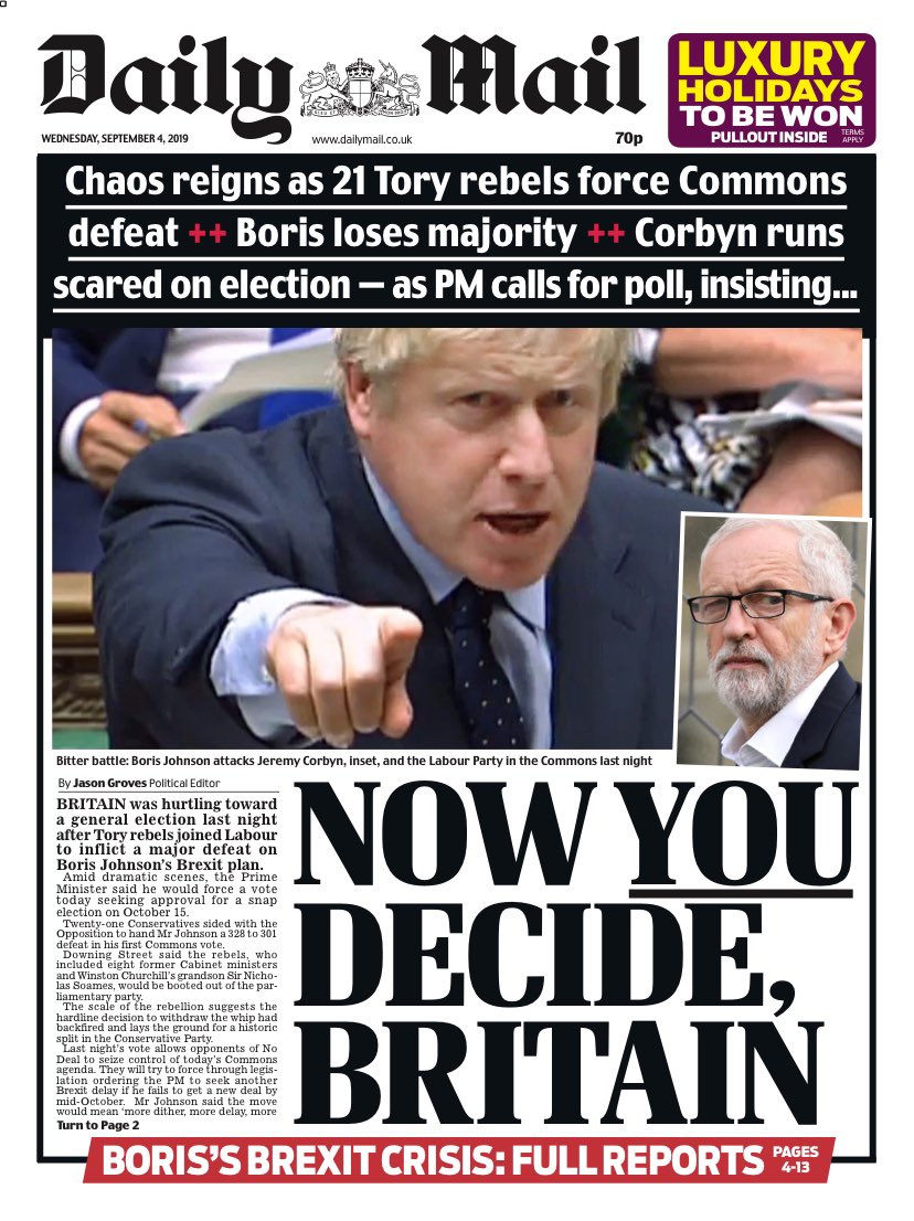 Χωρίς όμως να μπορέσει να αποφύγει την ανταρσία στους κόλπους των Τόρις, ο Τζόνσον είχε προειδοποιήσει πως επόμενο βήμα ήταν η προσφυγή στις κάλπες για να αποφασίσει ο βρετανικός λαός ποιον θέλει διαπραγματευτή στις συνομιλίες με την ΕΕ. Προφανώς έτσι θα γίνει.