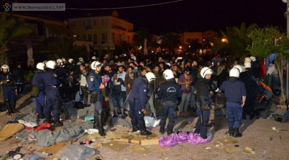 Πρωτοφανή επεισόδια με πολλούς τραυματισμούς και χρήση δακρυγόνων από την αστυνομία σημειώθηκαν όλη τη νύχτα της Κυριακής προς τη Δευτέρα στη Μυτιλήνη.