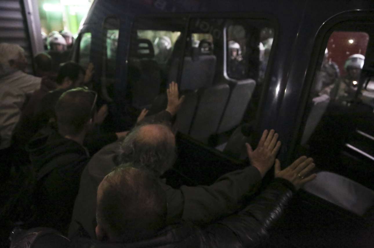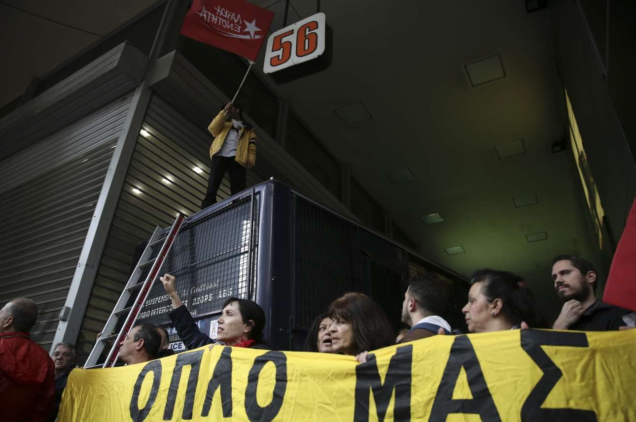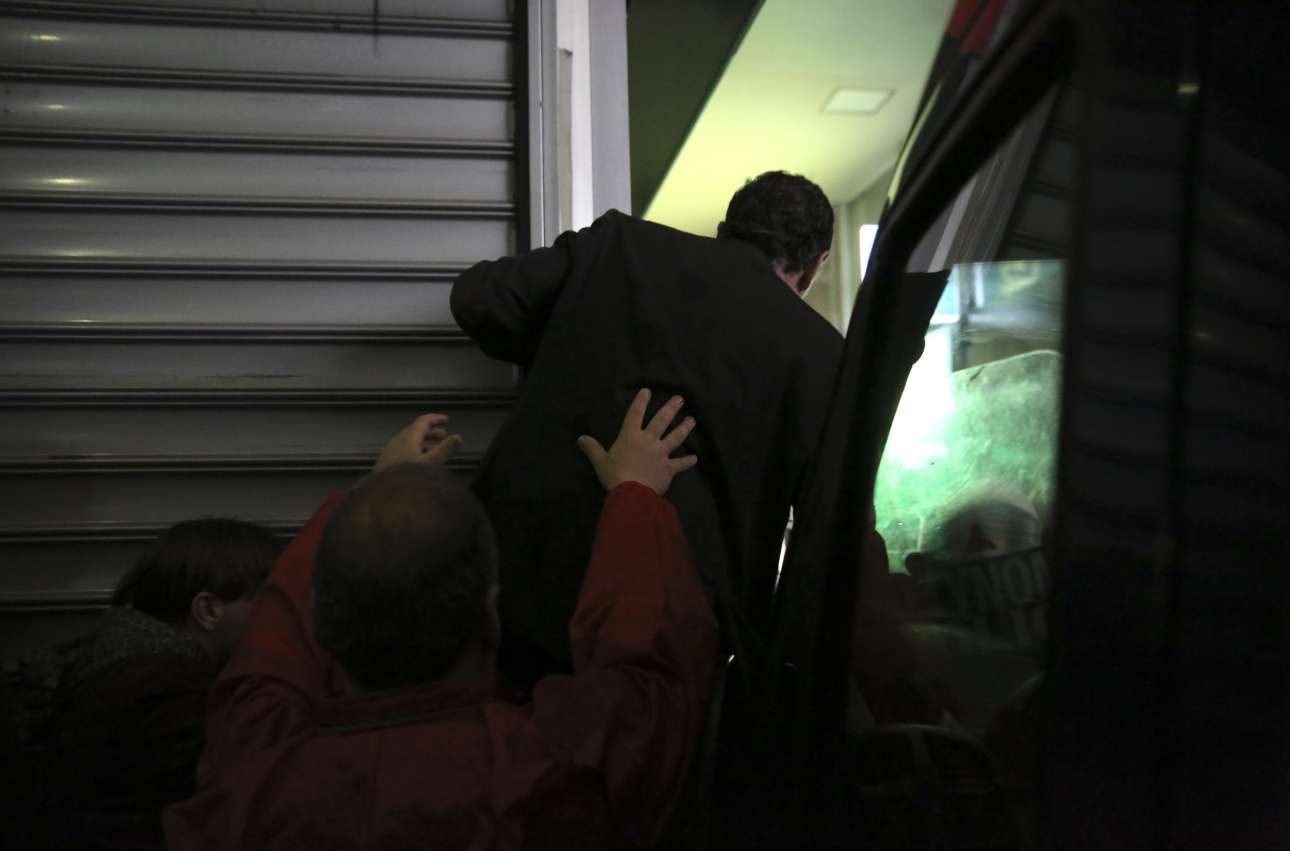 Την περασμένη Τετάρτη ήταν στη Σκουφά όπου έπεσαν και χημικά. Τώρα ήταν στην Πανεπιστημίου όπου το team Λαφαζάνη είχε σπεύσει να παρεμποδίσει πλειστηριασμούς. Επειδή λοιπόν η κλούβα των ΜΑΤ (που πάει μαζί με τις διαδηλώσεις της Λαϊκής Ενότητας) δεν είχε σταθμεύσει απλώς στον δρόμο, αλλά είχε καβαλήσει το πεζοδρόμιο και είχε μπλοκάρει μια ολόκληρη στοά στον αριθμό 56 της Πανεπιστημίου, ο ακτιβισμός του πρώην υπουργού Παραγωγικής Ανασυγκρότησης αναβαθμίστηκε: ενώ την προηγούμενη εβδομάδα κολούσε αυτοκόλητα στο όχημα, τώρα πήρε σκάλα και ανέβηκε επάνω στην κλούβα!