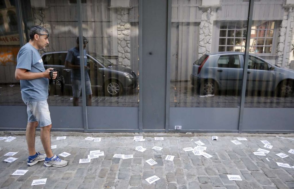 Τα μέλη της αναρχικής συλλογικότητας μπήκαν ανενόχλητα στο κτίριο, κρέμασαν πανό και στη συνέχεια έριξαν τρικάκια με το σύνθημα: «Πόλεμο στον πόλεμο των αφεντικών, καμία αλληλεγγύη στα αφεντικά».